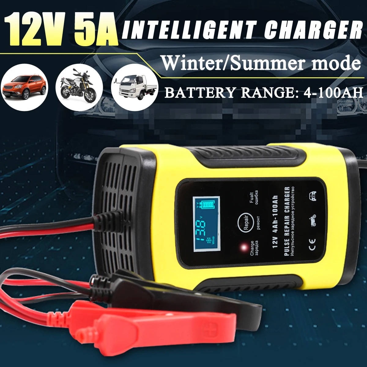 Special Offer Dla samochodów ciężarowych motocykl 12V 5A automatyczna inteligentna naprawa impulsów z przewodem LCD AGM GEL mokra ładowarka do akumulatora kwasowo ołowiowego 100 240V Discount 10% Today!