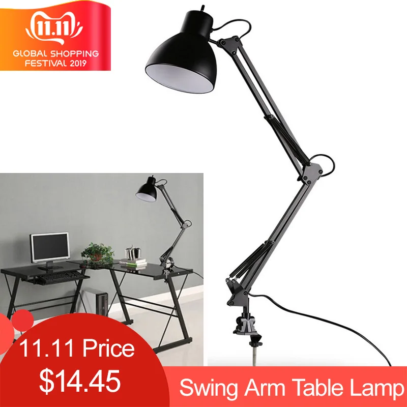 Special Offer Elastyczne ramię wahadłowe mocowanie zaciskowe lampa biurkowa czarna lampa stołowa lampka do czytania dla Home Office Studio Study 110 V 240 V do pokoju domowego Discount 28% Today!