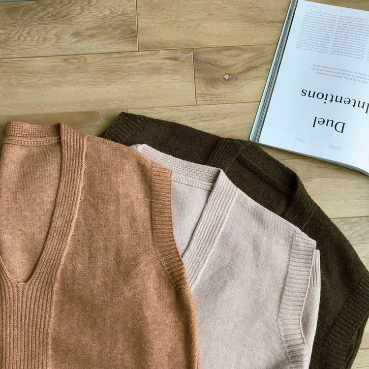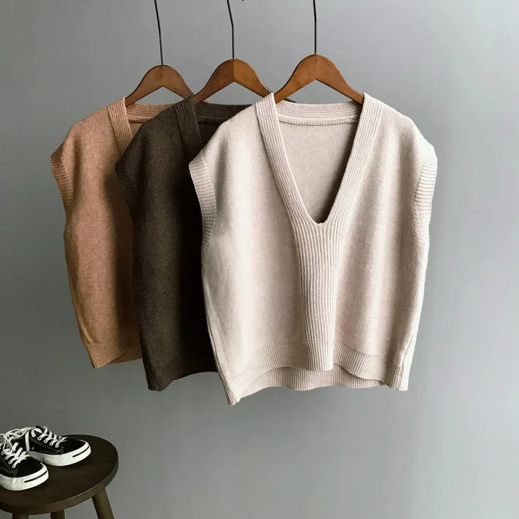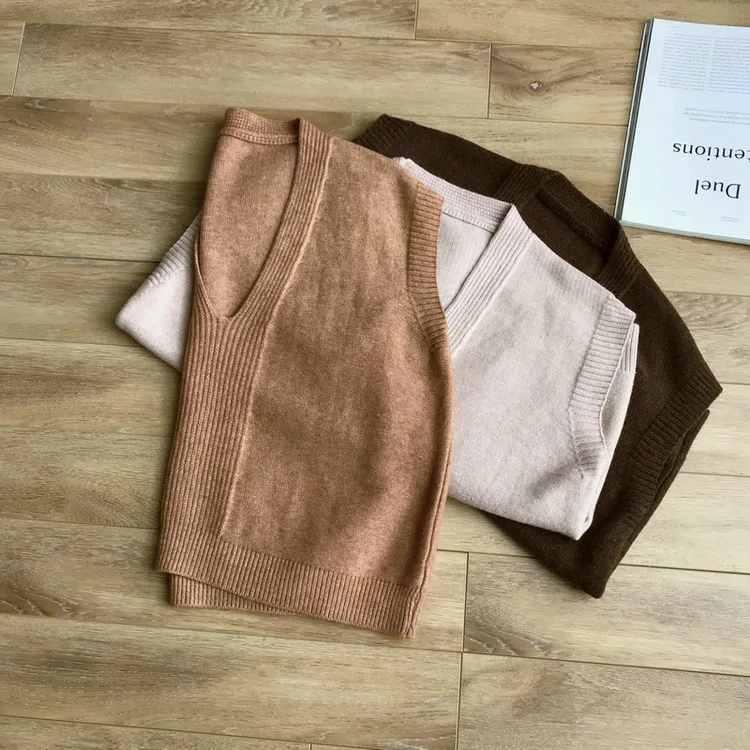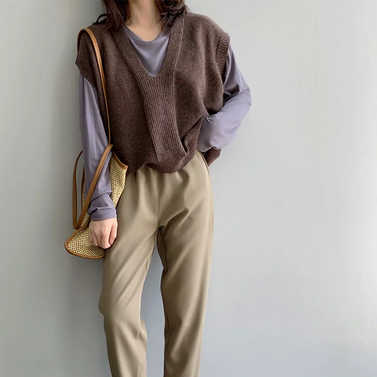 Special Offer Mooirue zima 2019 damski sweter na co dzień kamizelka bez rękawów V dziania elastyczna znosić Feminino brązowy z dzianiny Discount 30% Today!