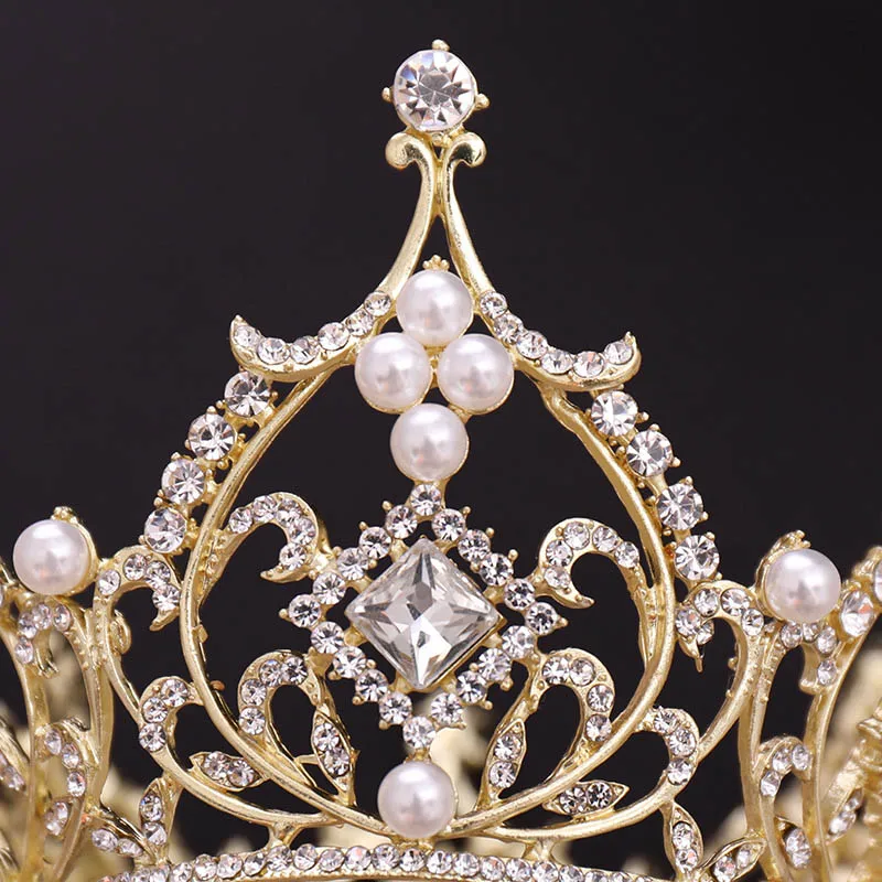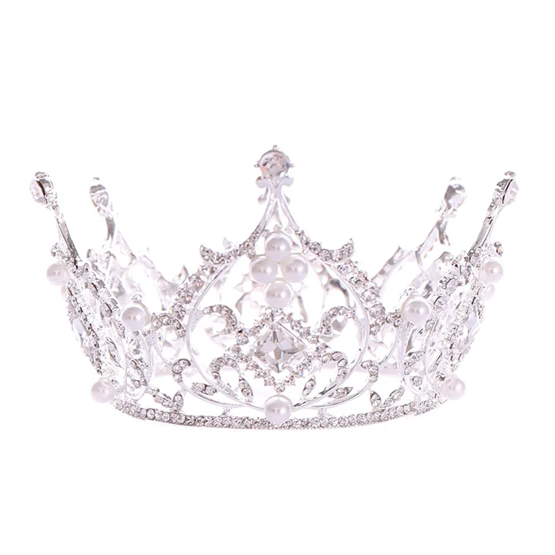 Special Offer FORSEVEN Pearl Bride Diadem duże w pełni okrągłe Rhinestone korona biżuteria do włosów chluba Diadem kobiety ślubne akcesoria do włosów JL Discount 32% Today!