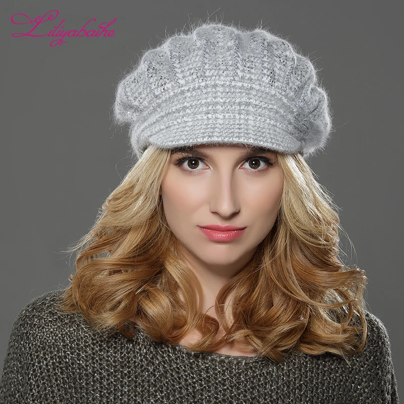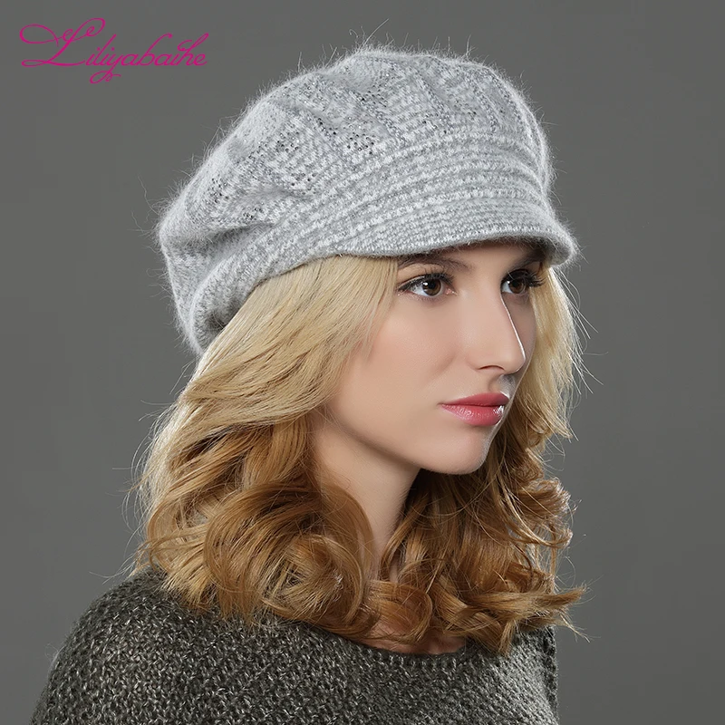 Special Offer LILIYABAIHE w nowym stylu kobiety czapka zimowa kapelusz z dzianiny wełna angora kapelusz geometryczna norka dekoracja kwiatowa czapka podwójna ciepła czapka Discount 43% Today!