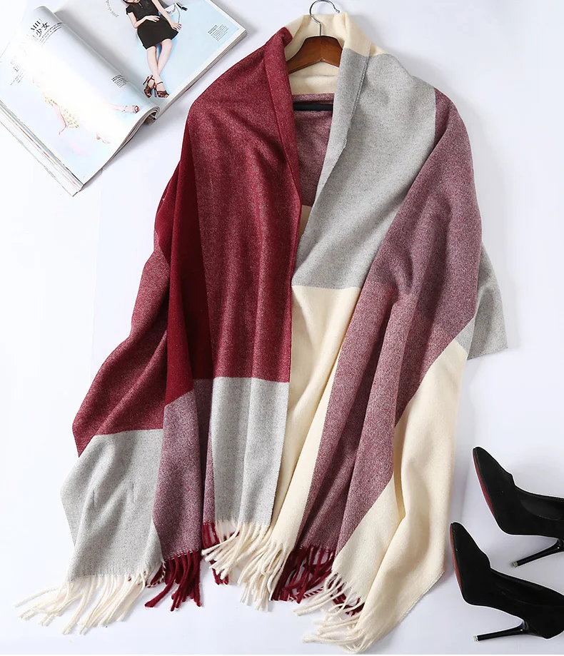 Special Offer 2019 nowy prawdziwy kaszmirowy szalik Stole Plaid wełniane szale dla kobiet Winter Warm kobieta Poncho Cape Fashion lady 100 Pashmina szale Discount 48% Today!