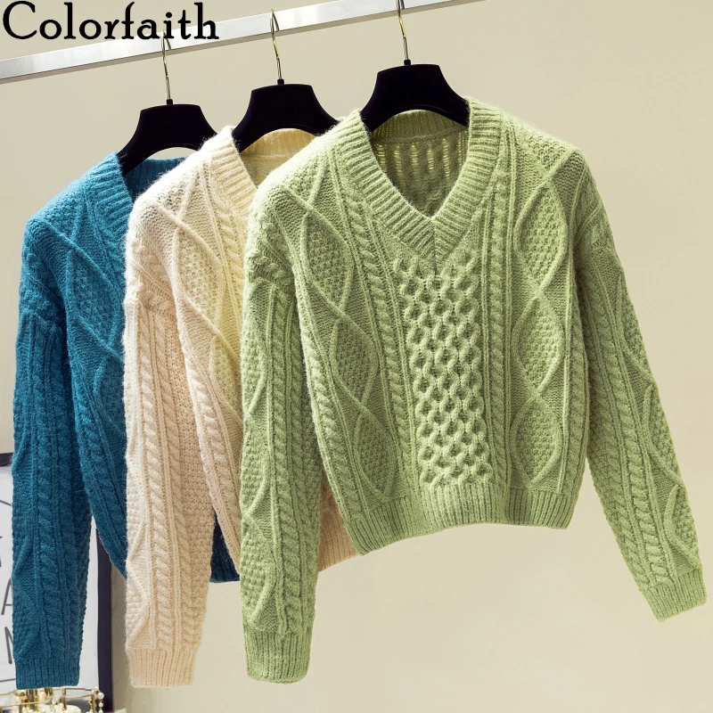 Special Offer Colorfaith nowy 2019 jesienne zimowe damskie swetry V Neck Knitting Fashion Korean Style solidne minimalistyczne damskie bluzki damskie SW716 Discount 50% Today!
