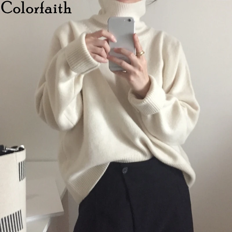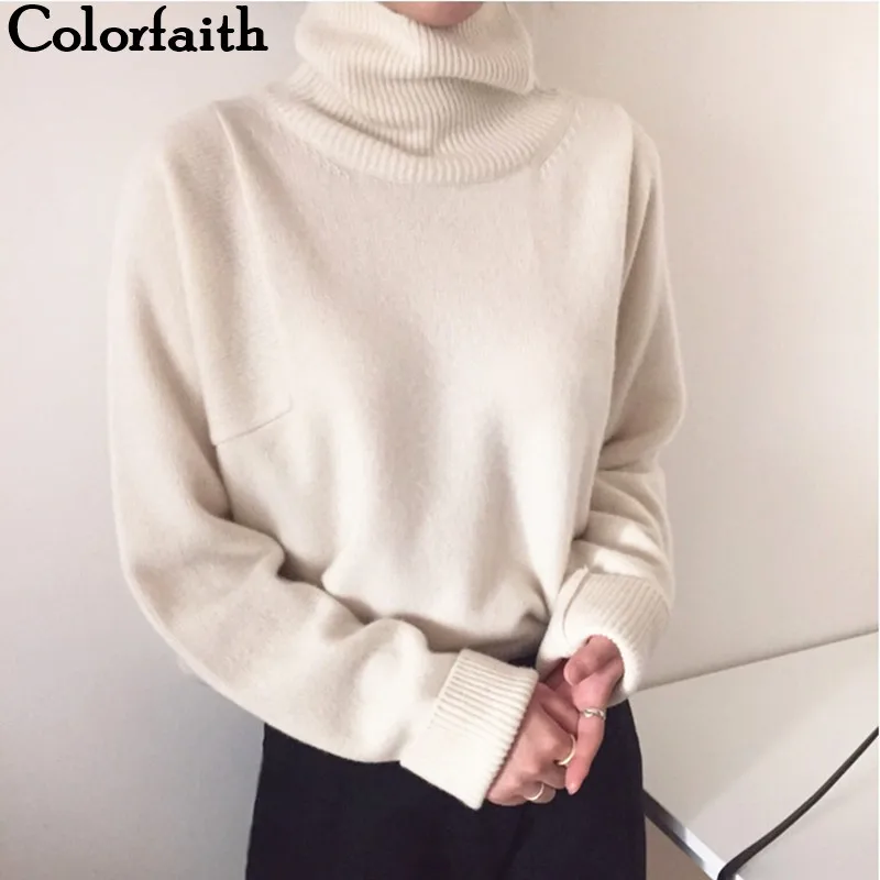 Special Offer Colorfaith nowy 2019 kobiet jesień zima swetry sweter z golfem stałe minimalistyczny elegancki urząd Lady luźne góra SW7276 Discount 50% Today!