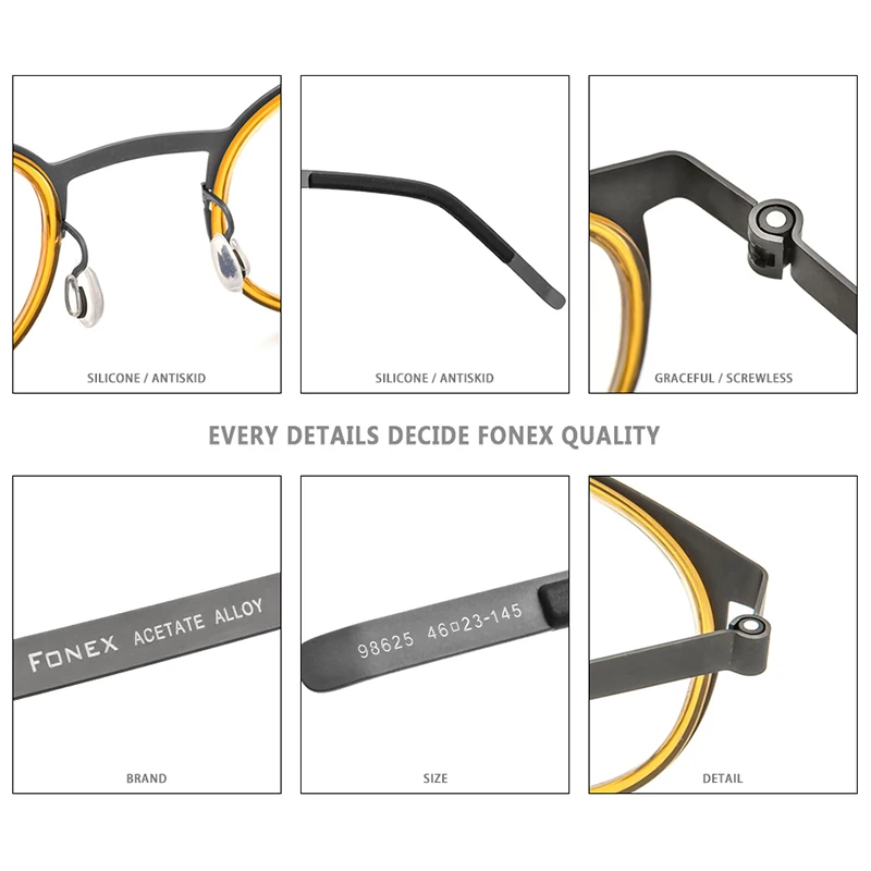Special Offer FONEX Acetate okulary z lekkiego stopu rama mężczyźni kobiety Vintage okrągłe krótkowzroczność oprawki do okularów korekcyjnych okulary korekcyjne bezśrubowe okulary 98625 Discount 67% Today!