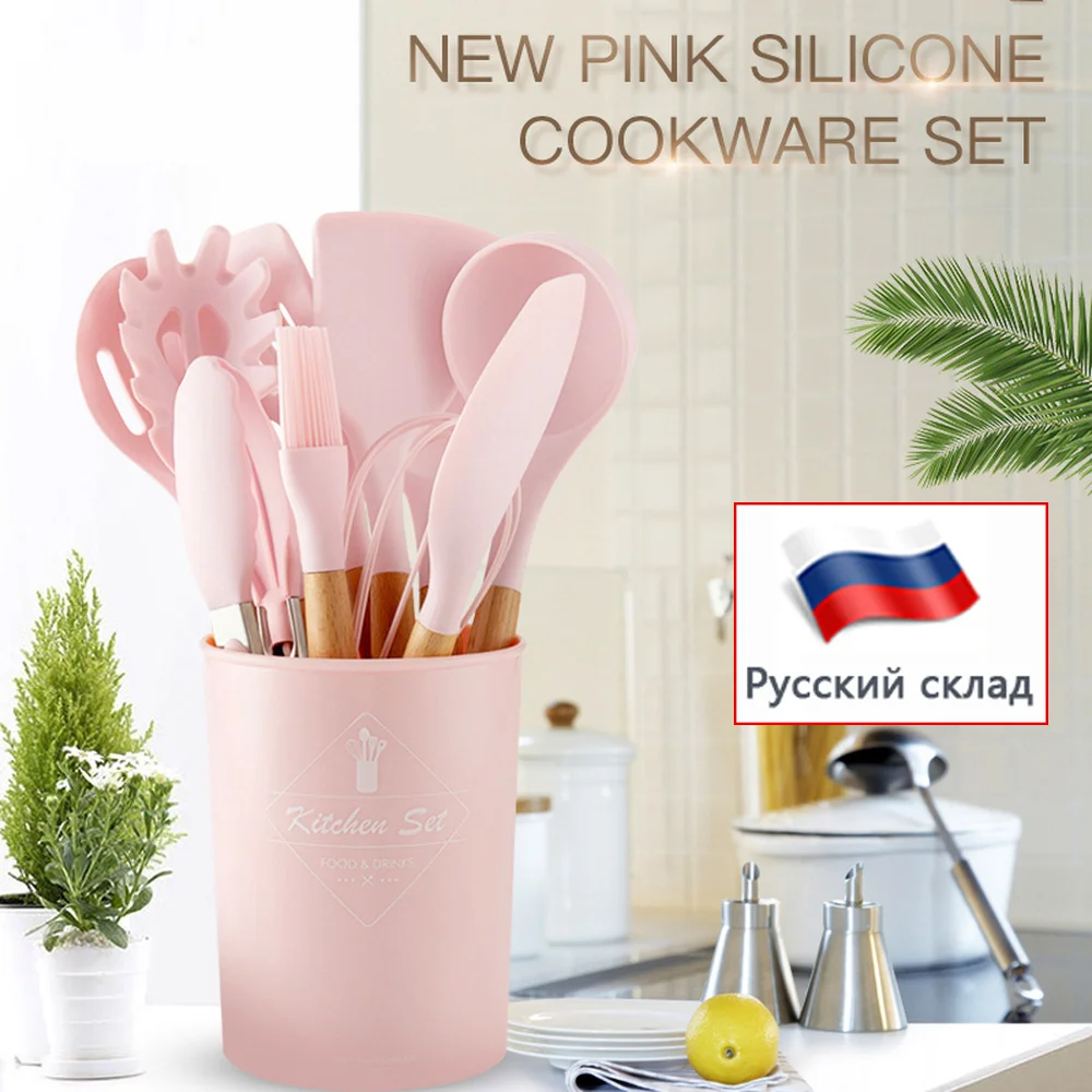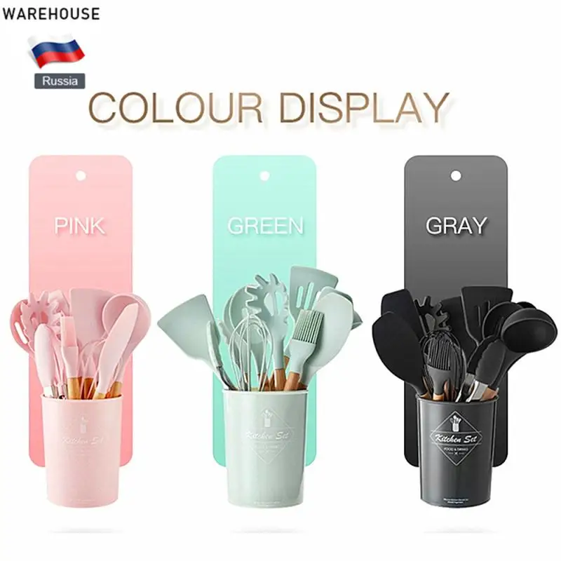 Special Offer Silikonowy zestaw kuchenny 11 12 Pcs przybory kuchenne do gotowania zestawy akcesoria narzędzia łopatka do domu z pojemnik na pudełko drewniany uchwyt , kitchen set , naczynia kuchenne Discount 0% Today!