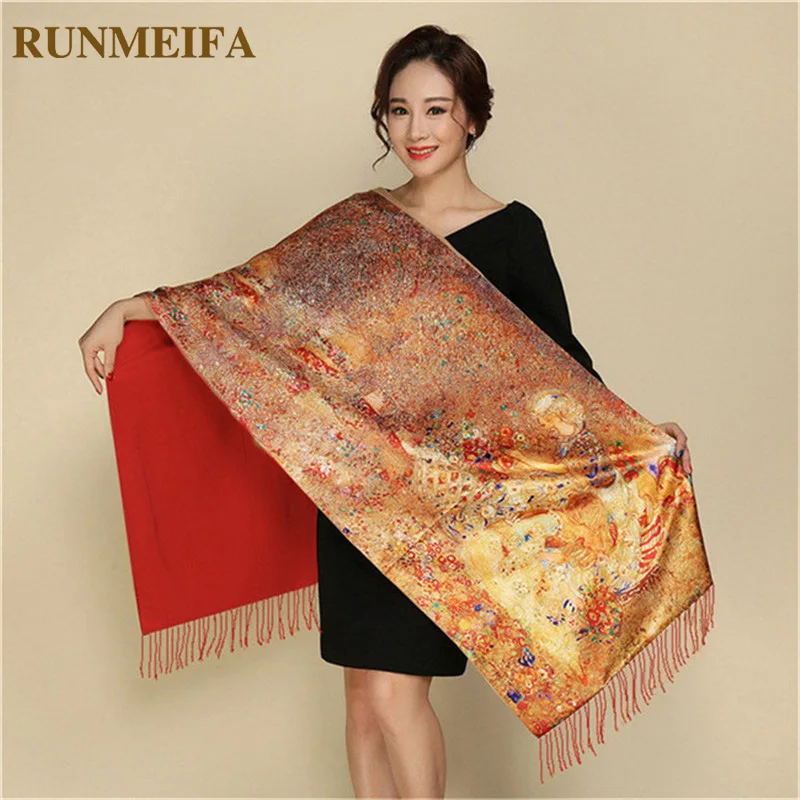 Special Offer Luksusowa zimowa ciepła kwiatowa nadruk szale jedwabne podwójne boki kaszmirowa wełna Pashmina Tippet szale i okłady elegancka kobieca fular Discount 46% Today!