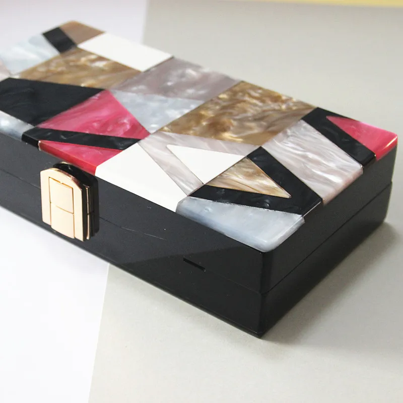 Special Offer Nowy kobiety Messenger torby marka moda luksusowe akrylowe geometria krata Patchwork torebka Party Prom sprzęgła kobieta torba wieczór Discount 49% Today!
