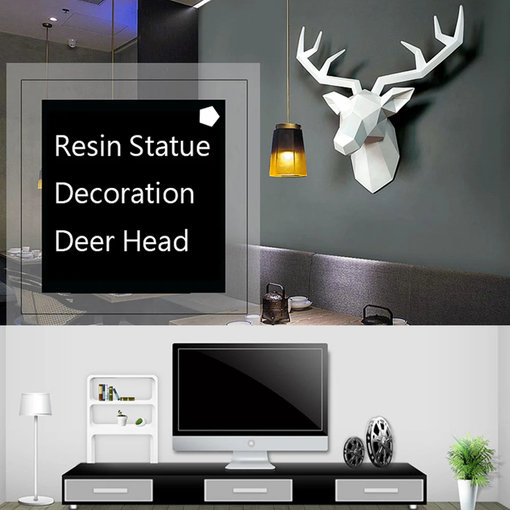 Special Offer 3D głowa jelenia rzeźba do dekoracji domu akcesoria geometrycznego jelenia głowy abstrakcyjna rzeźba dekoracja ścienna do pokoju jeleń z tworzywa sztucznego posąg głowy Discount 67% Today!