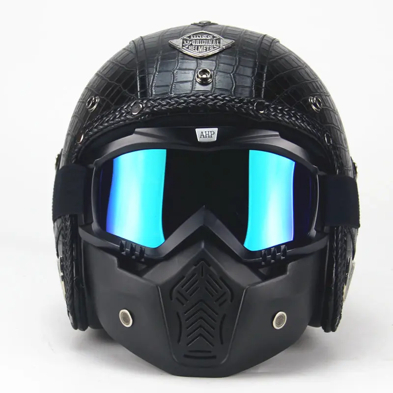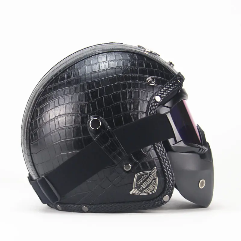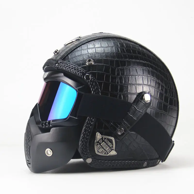 Special Offer Vintage PU skórzane kaski maska odpinane gogle i filtr na usta idealny do otwartej twarzy kask motocyklowy czarny Discount 74% Today!