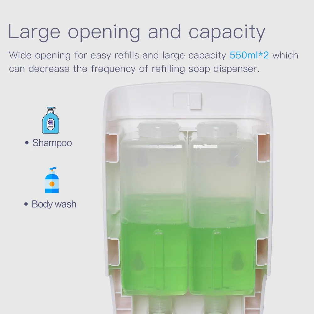 Special Offer Ścienny podwójny uchwyt do montażu na ścianie instrukcja cieczy dozownik do mydła ręczne naciśnięcie prysznic ciała balsam szampon ręczny dozownik mydła 550ml * 2 Discount 21% Today!