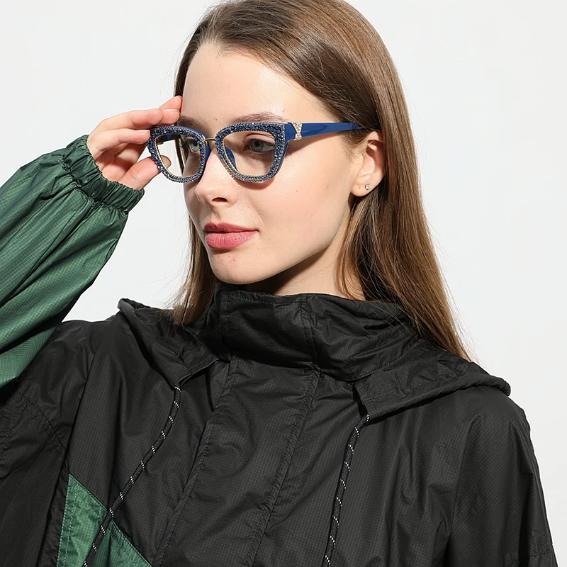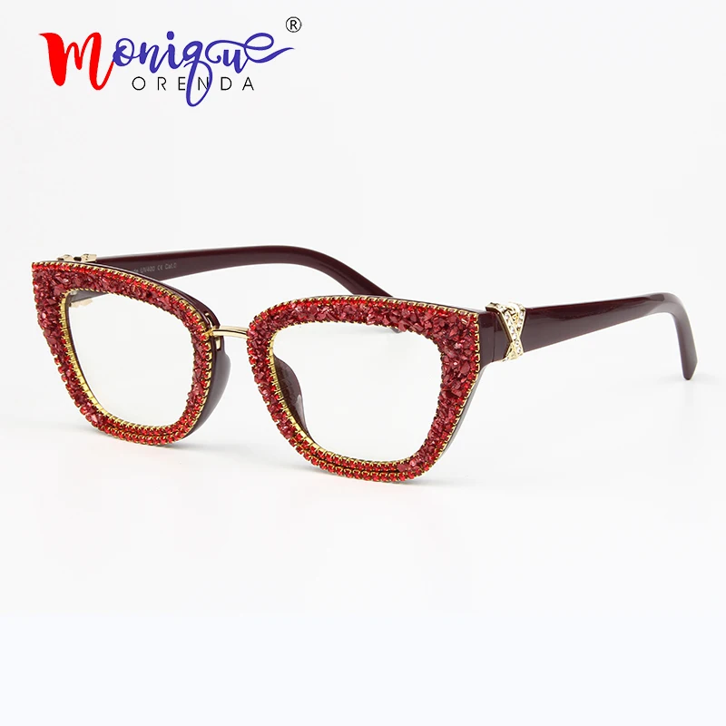 Special Offer Vintage kobiety kocie oko okulary luksusowy projektant mody żwir rhinestone dziewczyna ramki okularów feminino óculos zwykłe okulary Discount 33% Today!
