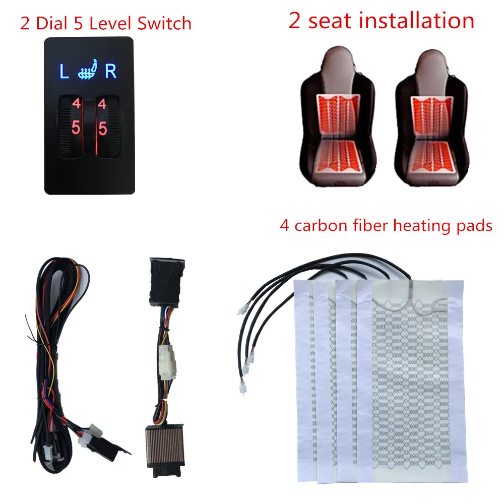 Special Offer 2 fotele 4 podkładki uniwersalny podgrzewacz na siedzenia z włókna węglowego podgrzewacz samochodowy 12V klocki 2 pokrętło 5 ławek przełączających do fotela wewnętrzego ciepłe akcesoria Discount 36% Today!