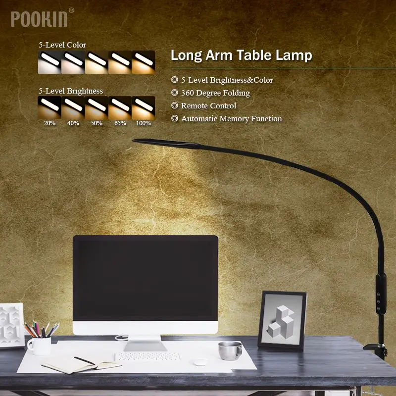 Special Offer Długie ramię tabeli klips lampy lampa biurowa Led biurko lampa zdalnie sterowana chroniąca oko lampa do sypialni światła Led 5 poziomowy jasności i kolor Discount 49% Today!