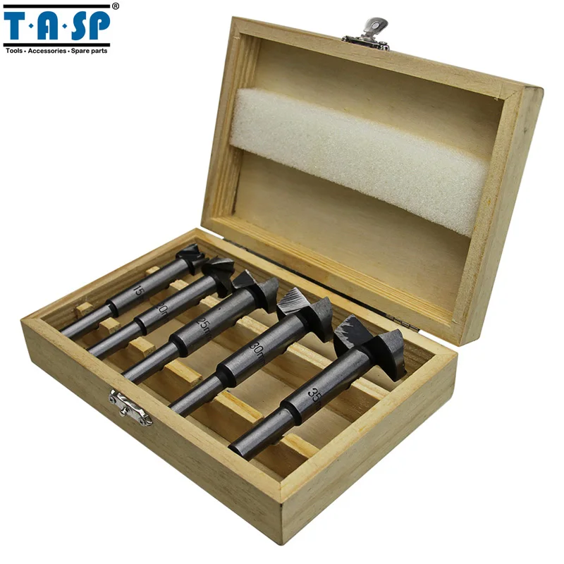 Special Offer TASP 5 sztuk drewna Forstner zestaw wierteł do obróbki drewna samo centrowanie piła walcowa elektronarzędzia akcesoria z pudełko do przechowywania Discount 24% Today!