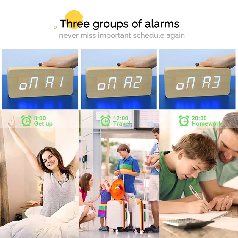Special Offer JINSUN zegary cyfrowe LED drewniane Despertador nowoczesny kwadratowy kolorowy budzik z czujnikiem temperatury sterowania głosem Discount 45% Today!