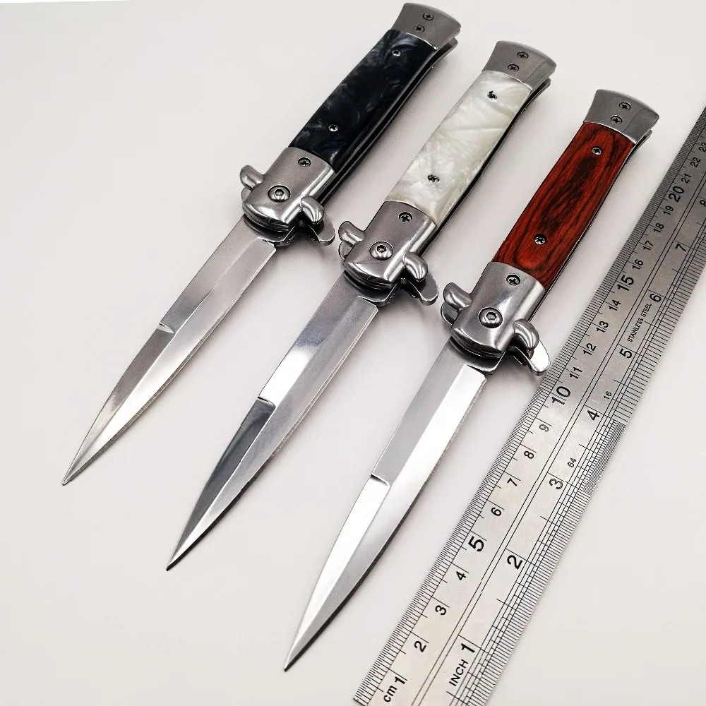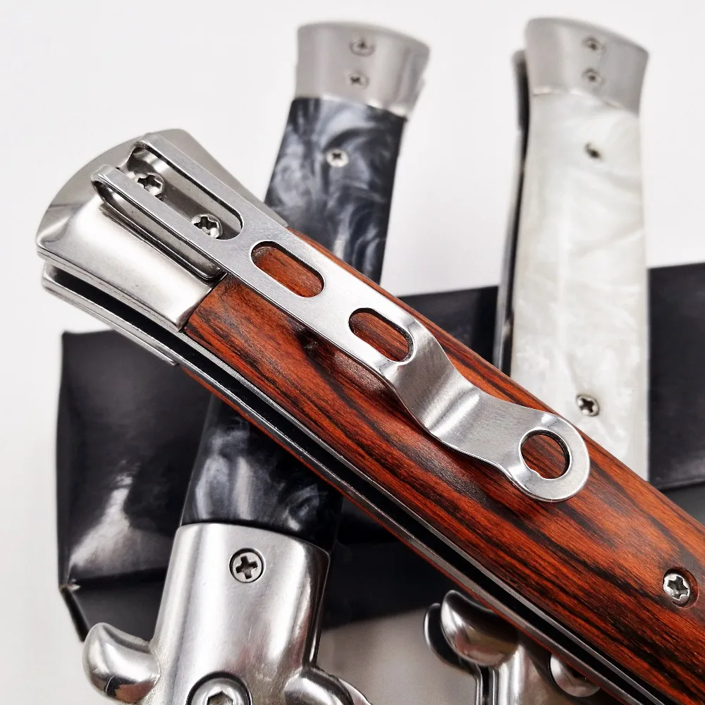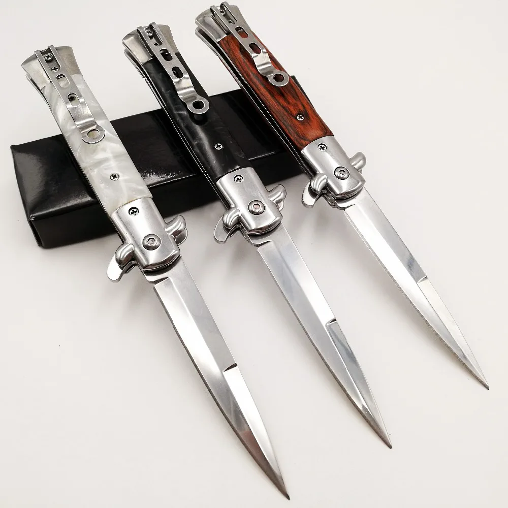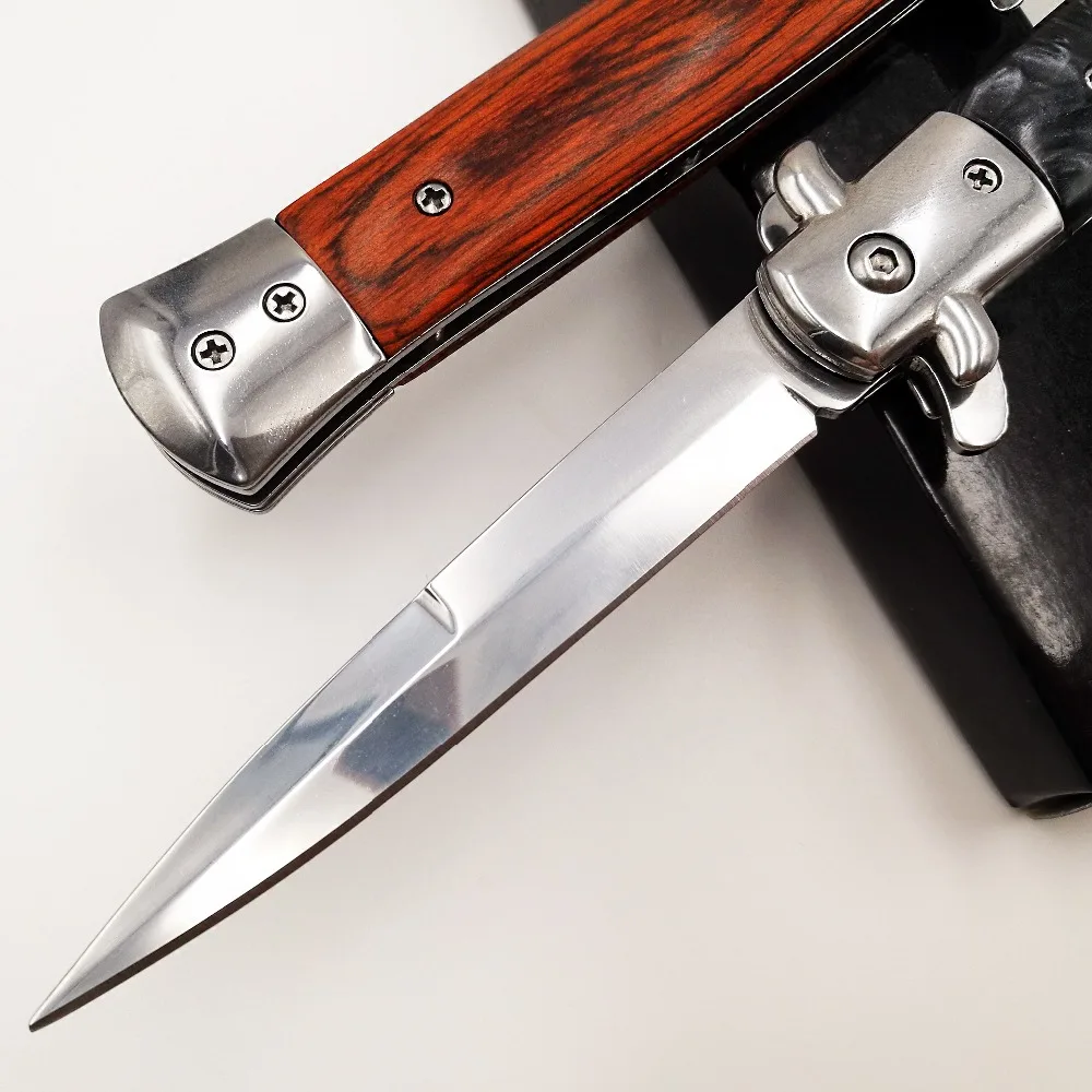 Special Offer Włoski ojciec chrzestny składany nóż 440C ostrze akrylowe drewno uchwyt kieszonkowe noże Camping Survival Tactical szybko otwarte narzędzia edc Discount 12% Today!