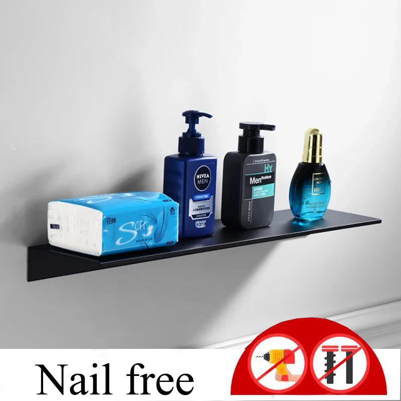 Special Offer Nail Free Space aluminium czarne białe półki łazienkowe ściana kuchenna półka regał pod prysznic akcesoria łazienkowe 30 60cm długość Discount 35% Today!