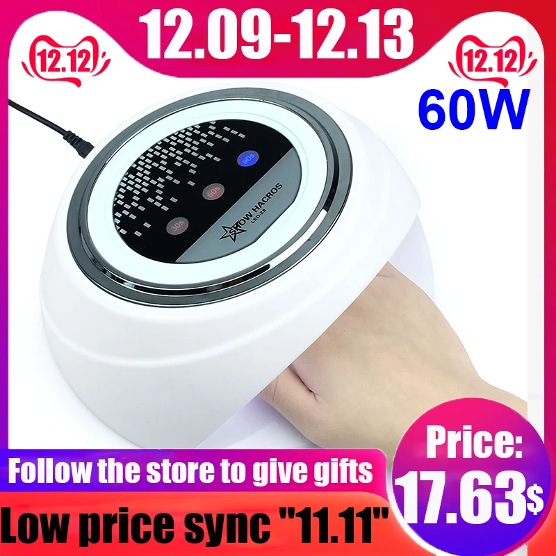 Special Offer 60W lampa uv do paznokci automatyczny czujnik lampa lodowa do suszarki do paznokci dla wszystkich żelowych polskich narzędzie do zdobienia paznokci profesjonalna lampa Led do paznokci Discount 41% Today!
