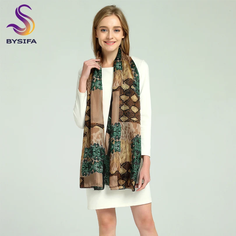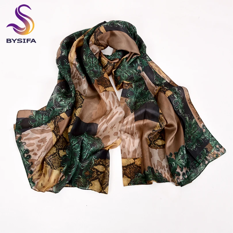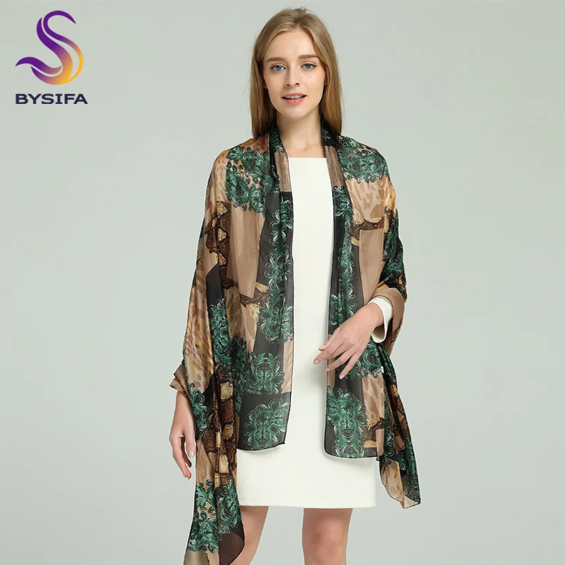 Special Offer [BYSIFA] marka niebieska zielona jedwabna szal szal kobiece akcesoria wiosna jesień kwiatowy wzór 100% jedwabne kobiety długie szale okłady Discount 43% Today!