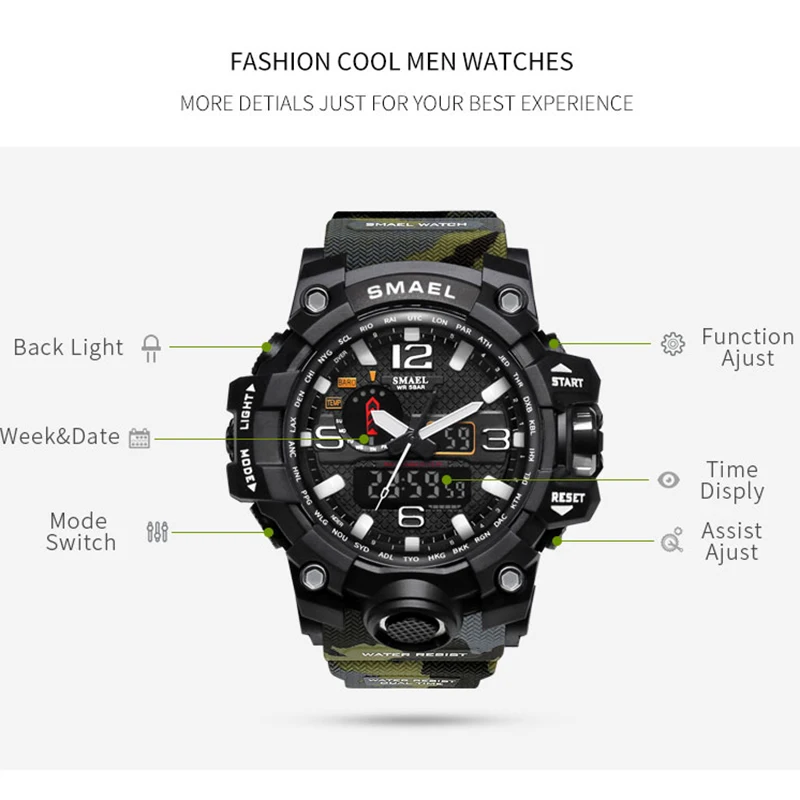 Special Offer Marka smael sport zegarki mężczyźni podwójny czas kamuflaż zegarek wojskowy mężczyźni armia cyfrowy zegarek led 50M wodoodporny zegar męski Discount 43% Today!
