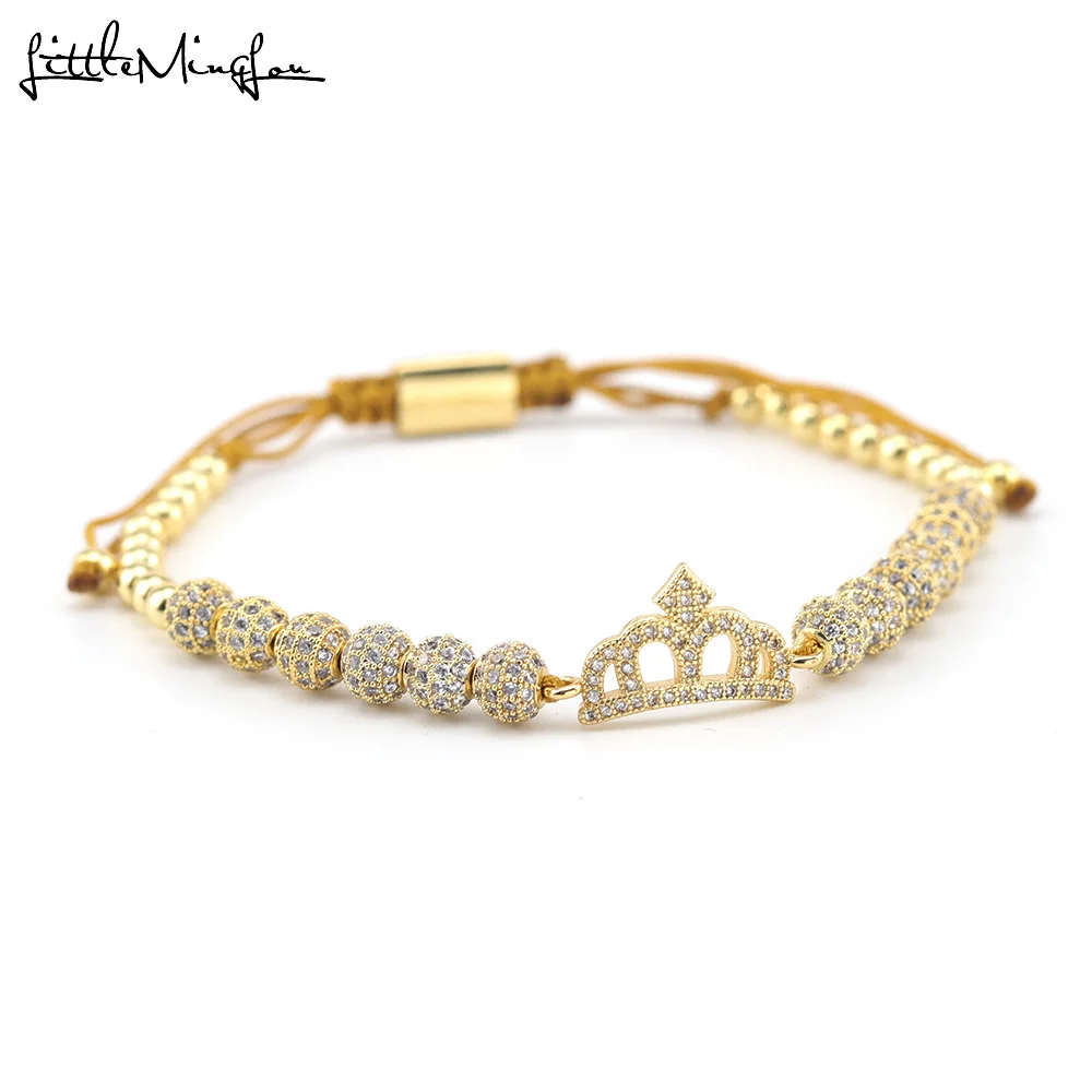 Special Offer Luksusowe CZ królowa korona bransoletka piłka urok miedziane koraliki handmade makrama kobiety bransoletki bransoletki dla kobiet biżuteria akcesoria Discount 47% Today!
