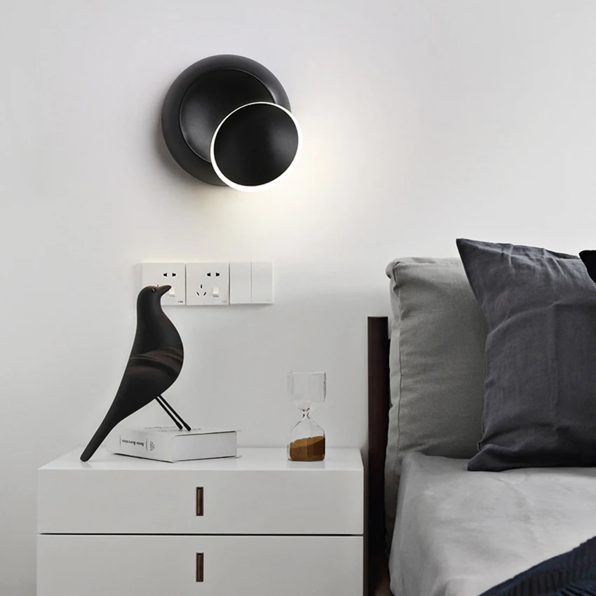 Special Offer LED kinkiet 360 stopni obrót regulowana lampka nocna biały czarny kreatywny nowoczesny aluminiowy kinkiet alejek okrągła lampa ML29 Discount 50% Today!