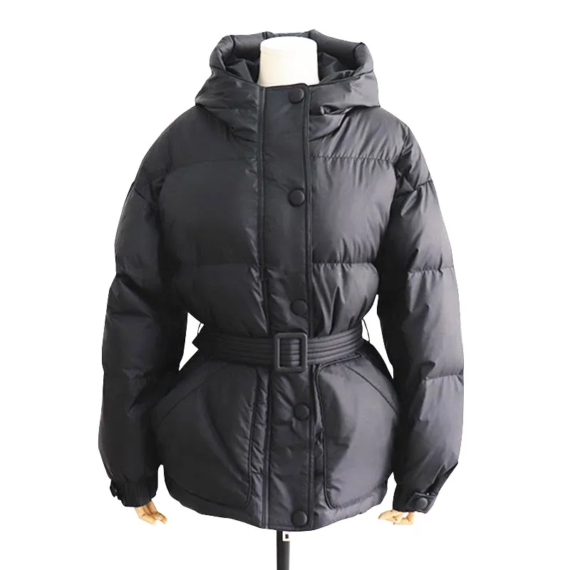Special Offer Trzy kolory solidne damskie parki z kapturem, na suwak płaszcz jednorzędowy zimowy gruby koreański mody szarfy kurtka Discount 54% Today!