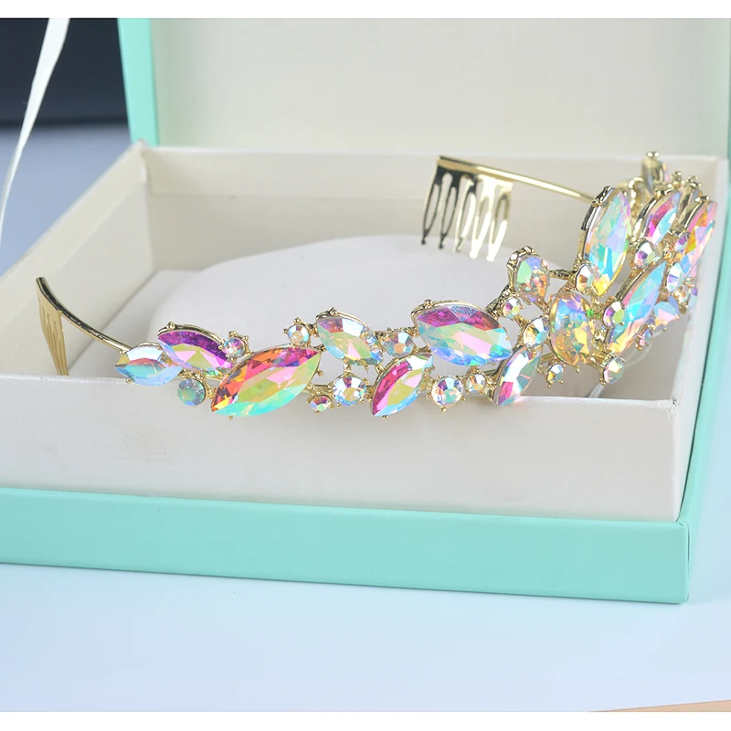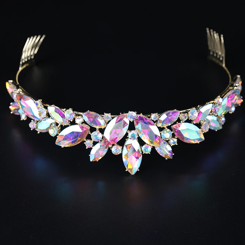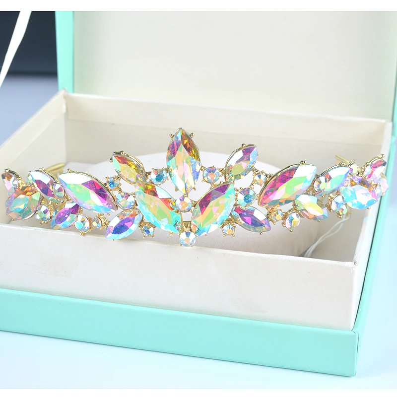 Special Offer Marquise shape ab szklany korona tiary ślubne crystal Fashion Diadem Tiara na opaski panny młodej kobiety ślubne akcesoria do włosów Discount 18% Today!