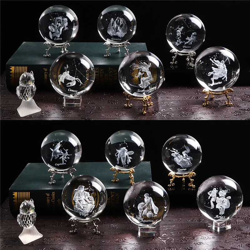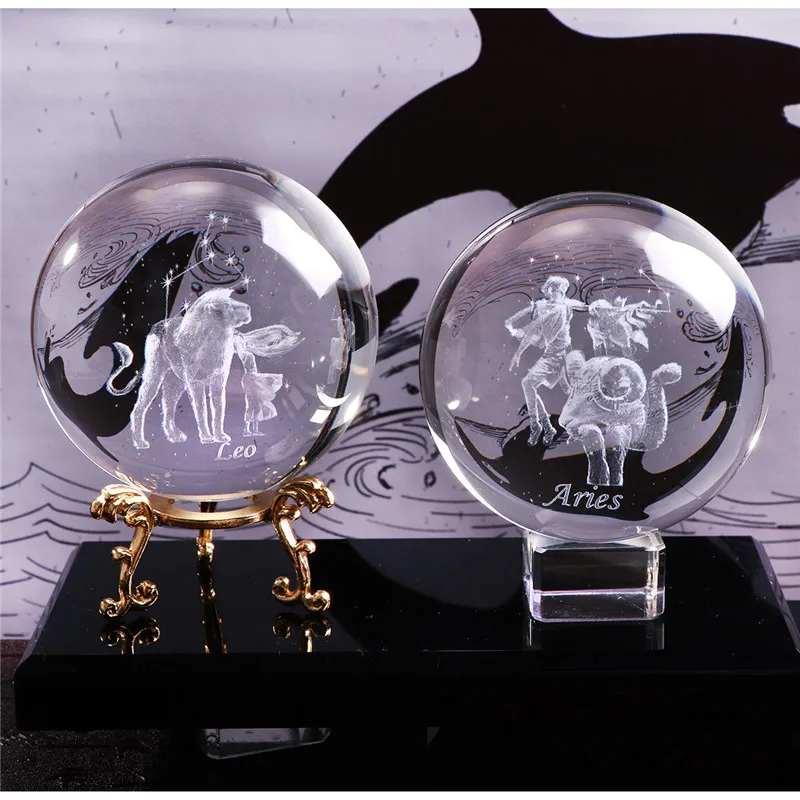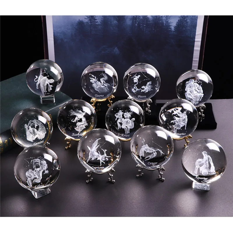 Special Offer 80 MM grawerowany laserem znak zodiaku kryształowa kula miniaturowa 3D do rękodzieła kryształków szklana dekoracja kula akcesoria do dekoracji wnętrz prezent Discount 40% Today!