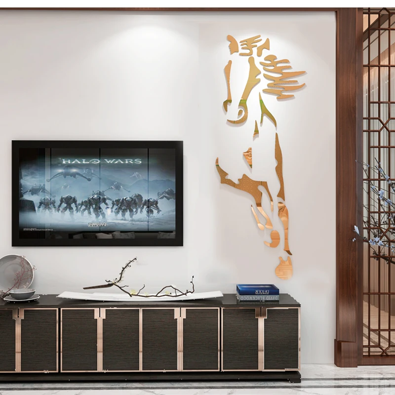 Special Offer New arrival konie salon akrylowe 3d naklejki ścienne tło do restauracji DIY dekoracje na ścianę twórcze lustro naklejki ścienne Discount 45% Today!