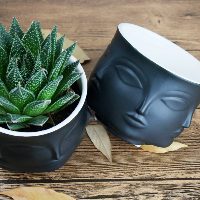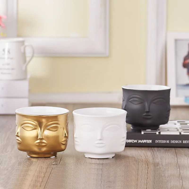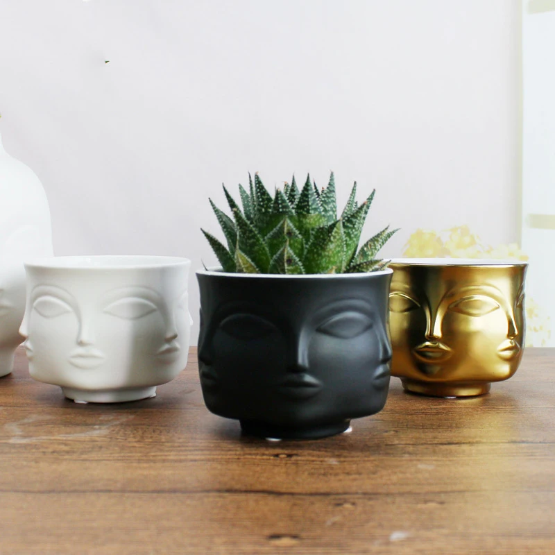 Special Offer Kształt twarzy wzory wazon ceramiczny porcelanowa z kwiatem akcesoria do dekoracji domu sadzarki złoty czarny biały narzędzia Discount 10% Today!