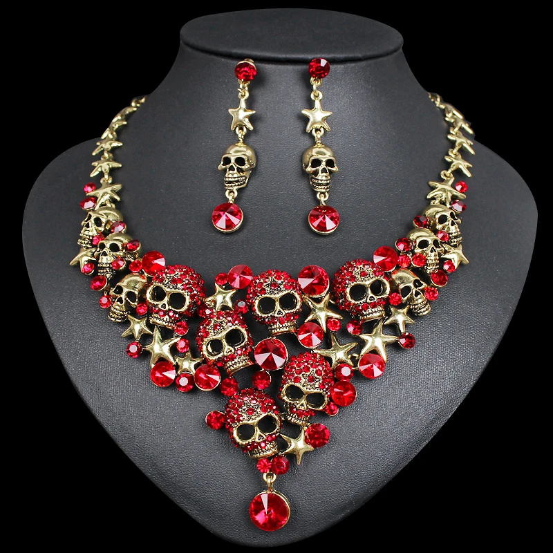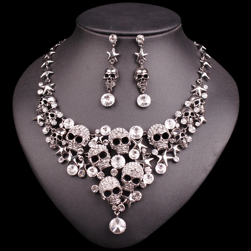 Special Offer Vintage Crystal biżuteria z czaszką zestawy Punk naszyjnik kolczyki Retro gwiazdy szkielet biżuteria Halloween akcesoria imprezowe dla kobiet Discount 25% Today!