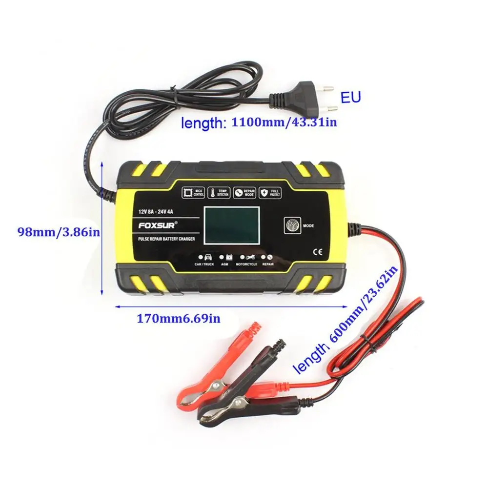 Special Offer Motocykl samochodowy 12V 8A 24V 4A naprawy impulsów ładowarka z wyświetlaczem Lcd Agm ołowiu kwasu ładowarka baterii Discount 32% Today!