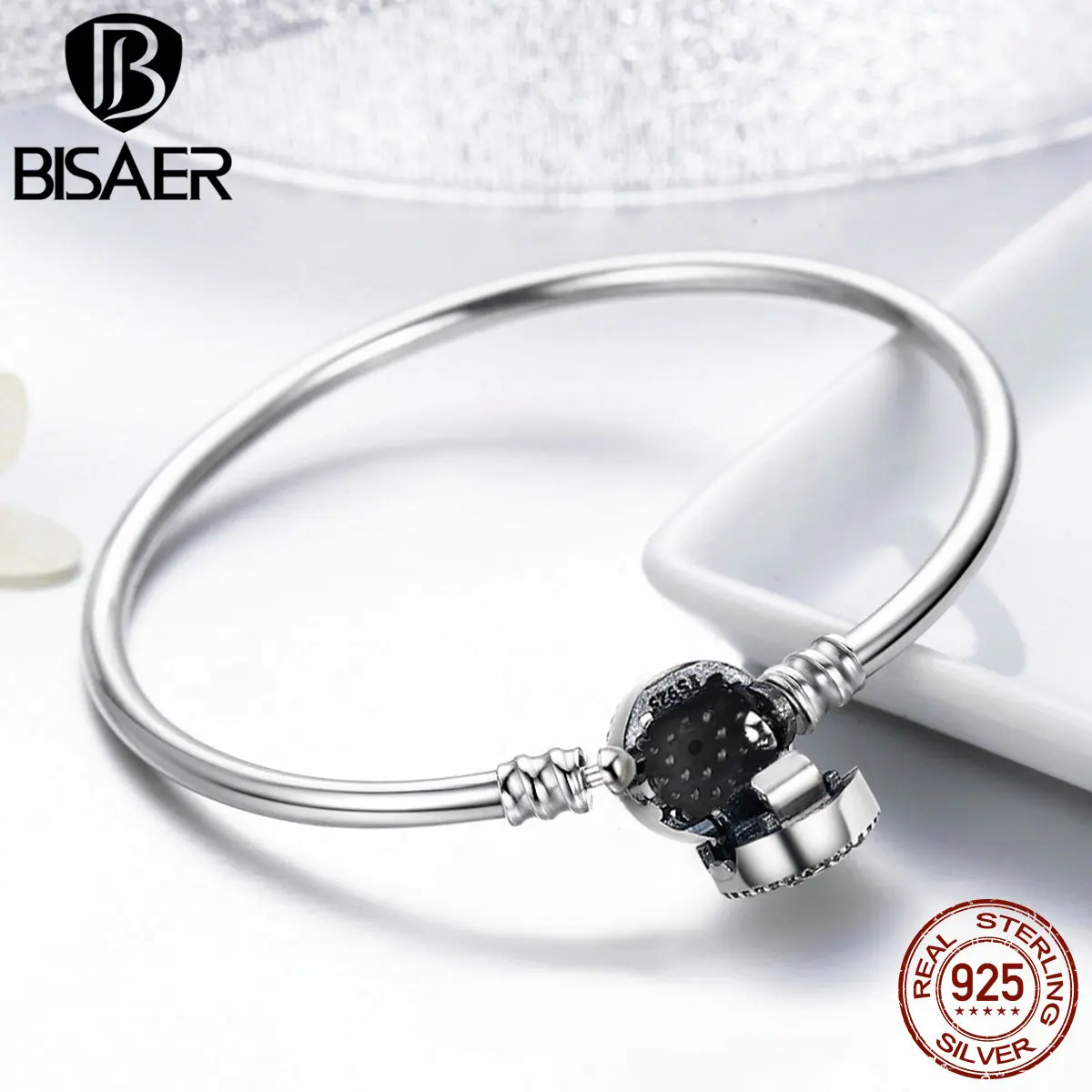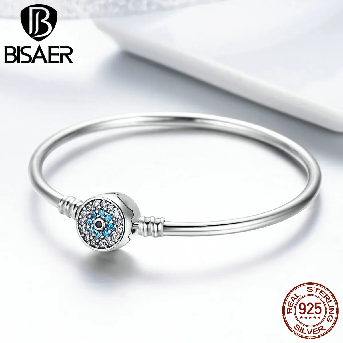 Special Offer BISAER prawdziwe 925 srebro niebieski szczęście złe oczy niebieskie oko Femme bransoletki i Bangles dla kobiet DIY akcesoria biżuteria ECB012 Discount 40% Today!
