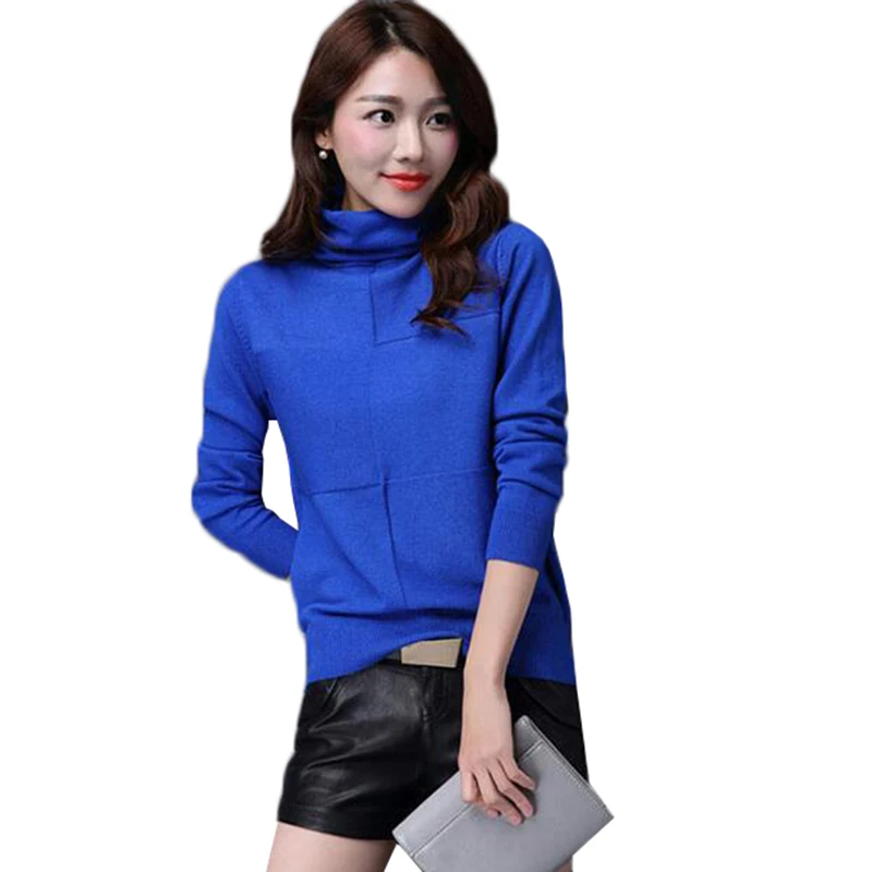 Special Offer Sweter z golfem kobieta 2018 jesienno zimowa sweter z dzianiny luźna z długim rękawem wygodna miękka długa koszula kobiecy sweter 47 Discount 57% Today!