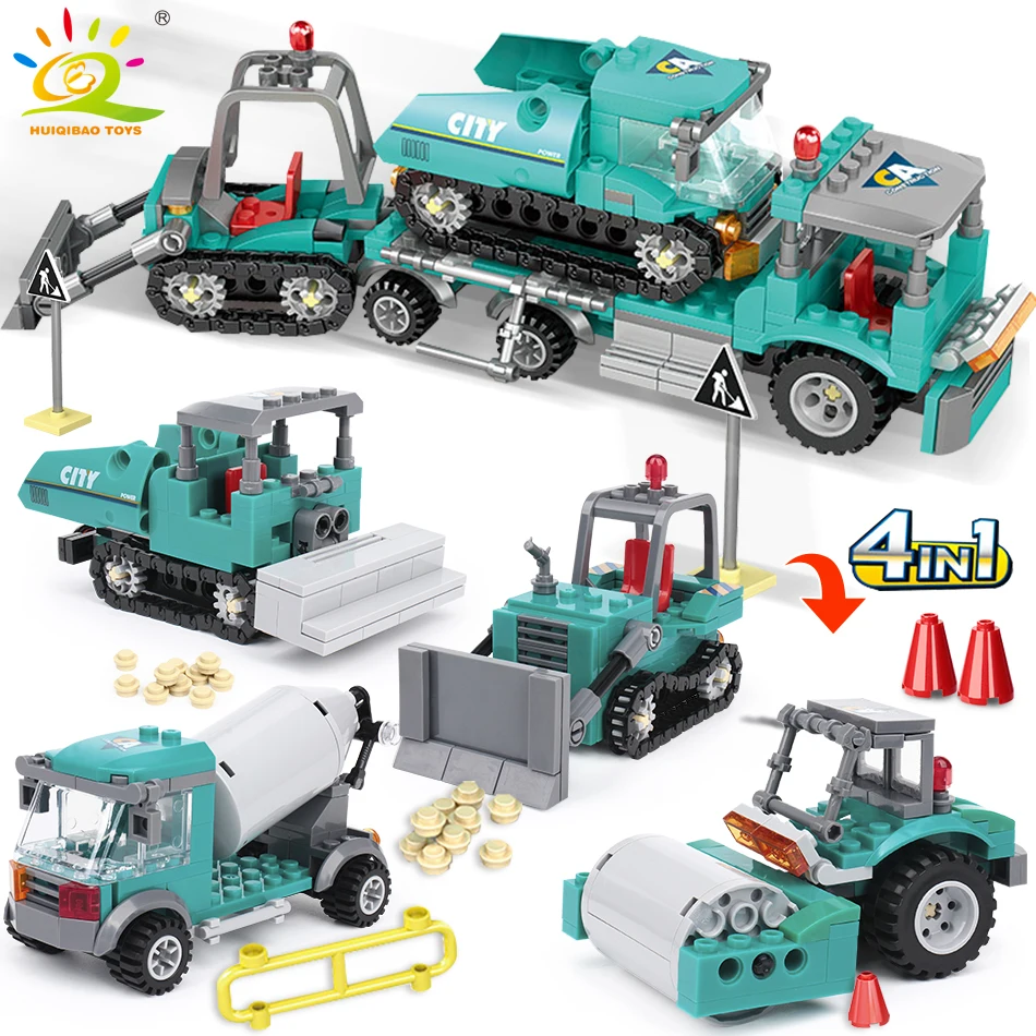 Special Offer 462 sztuk 4w1 miasto ciężarówki inżynieryjne klocki kompatybilny legoing koparka spychacz Creator cegły klocki dla dzieci prezent Discount 59% Today!