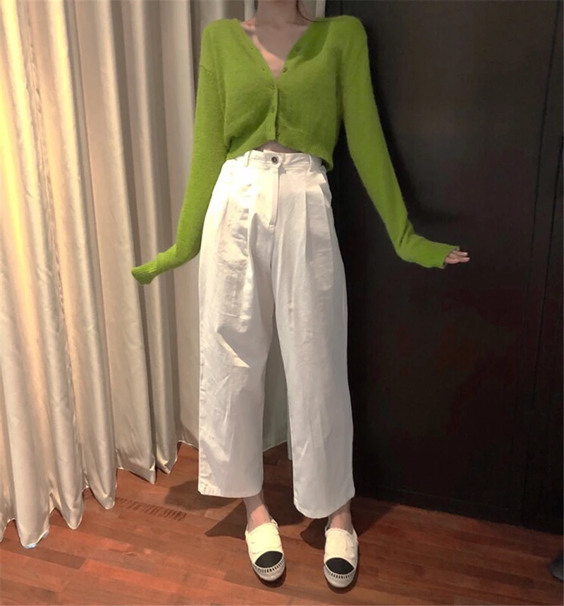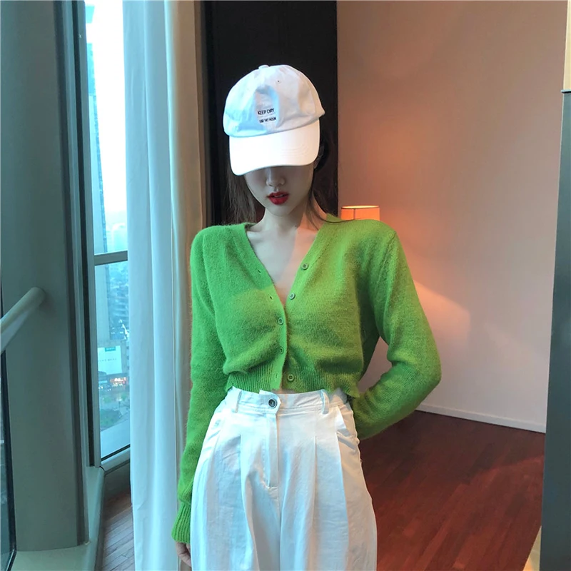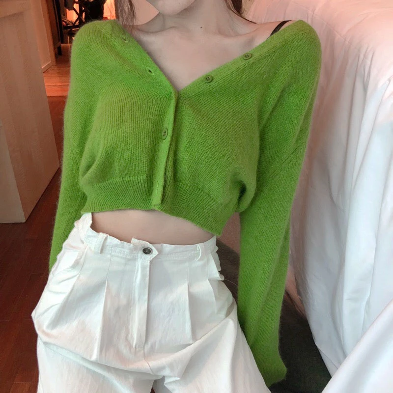 Special Offer Cienkie dzianiny sweter z długim rękawem Casual dekolt w serek jednokolorowe zielone swetry damskie (R1274) Discount 20% Today!