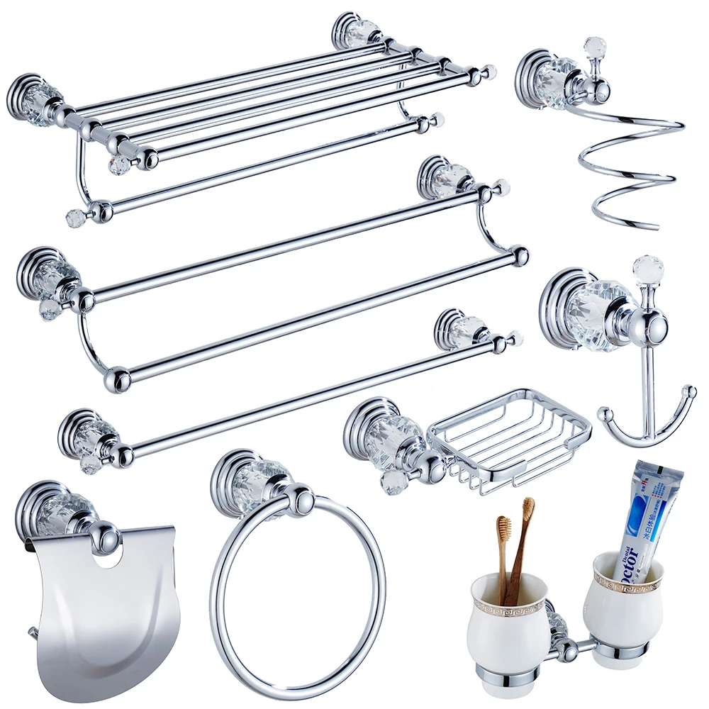 Special Offer Luksusowy kryształ srebrny zestaw akcesoriów łazienkowych chrom polerowany mosiądz sprzęt kąpielowy zestaw ścienny łazienka produkty TS1102 Discount 20% Today!