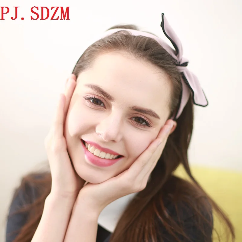 Special Offer Słodki królik ucho kobiet opaska do włosów z zębami tkaniny koronki PU Chic dziewczyna akcesoria do włosów antypoślizgowe wszystko mecz Hairwear z pałąkiem na głowę HB0137 Discount 21% Today!