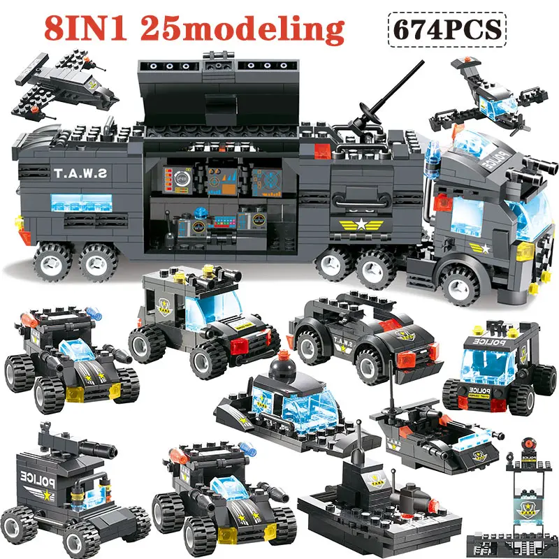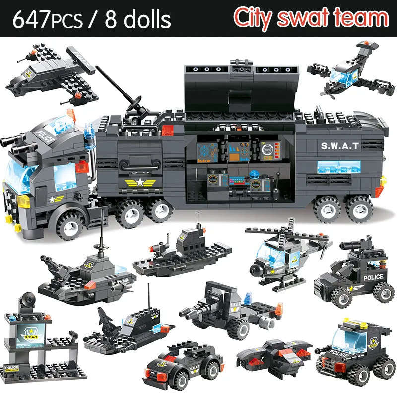 Special Offer 647 sztuk 762 sztuk moduł Building Blocks legoingly City mobilna policja SWAT policja miejska ciężarówka stacja cegieł zabawki dla dzieci chłopców Discount 35% Today!