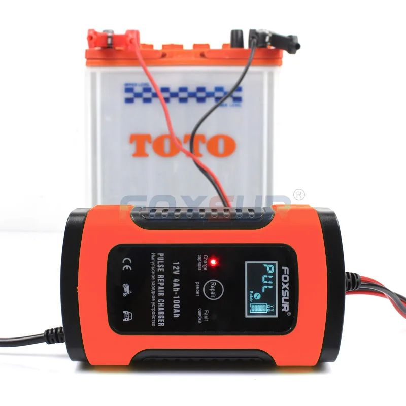 Special Offer FOXSUR 12V 20Ah 60Ah 100Ah ładowarka do akumulatora kwasowo ołowiowego UPS motocykl i ładowarka samochodowa ładowarka do naprawy pulsu z wyświetlaczem LCD Discount 42% Today!