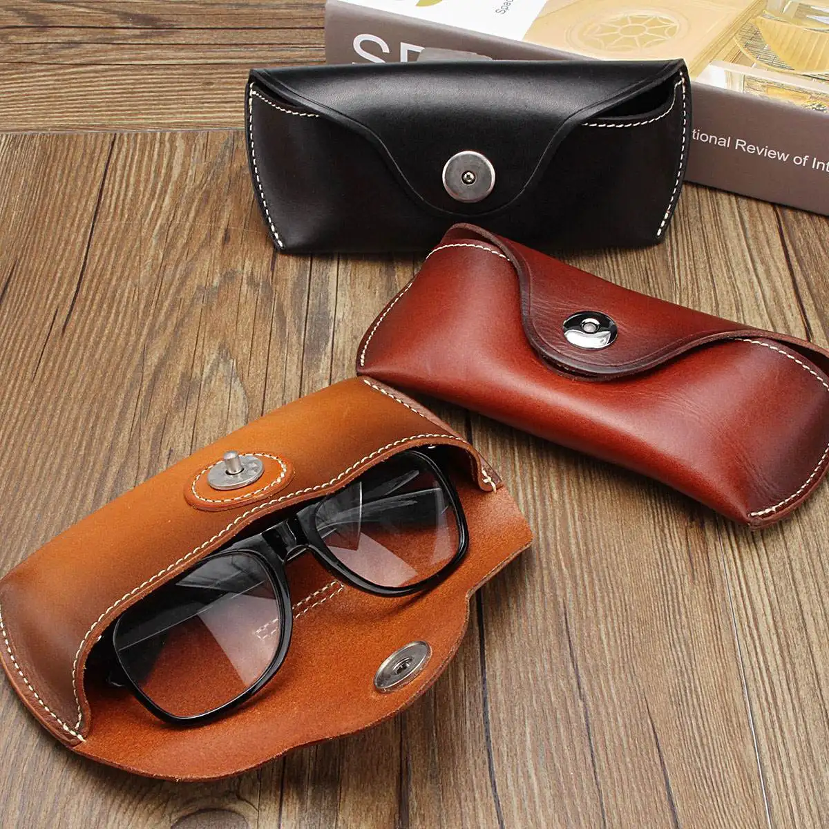 Special Offer Skóra bydlęca oko torba na okulary do okularów wysokiej jakości ręcznie na co dzień pasek do jeansów etui na okulary okulary Protector Case czarny Discount 49% Today!