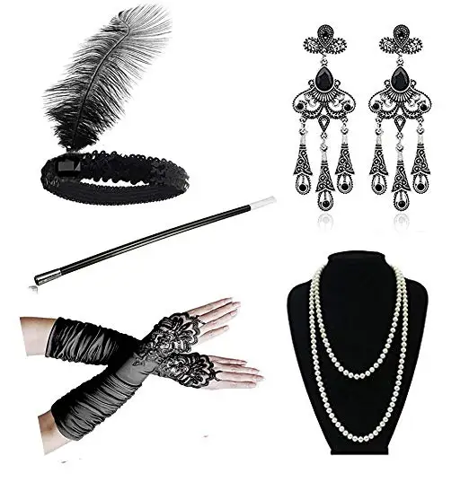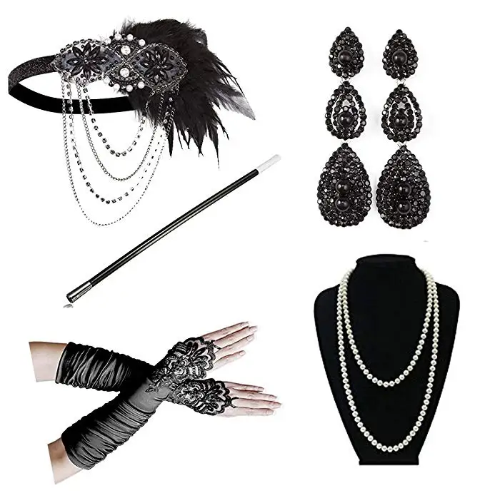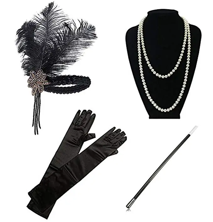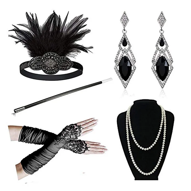 Special Offer 1920 kobiet vintage GATSBY feather opaski klapy akcesoria do kostiumów uchwyt papierosa naszyjnik z pereł zestaw rękawiczek do włosów Discount 5% Today!