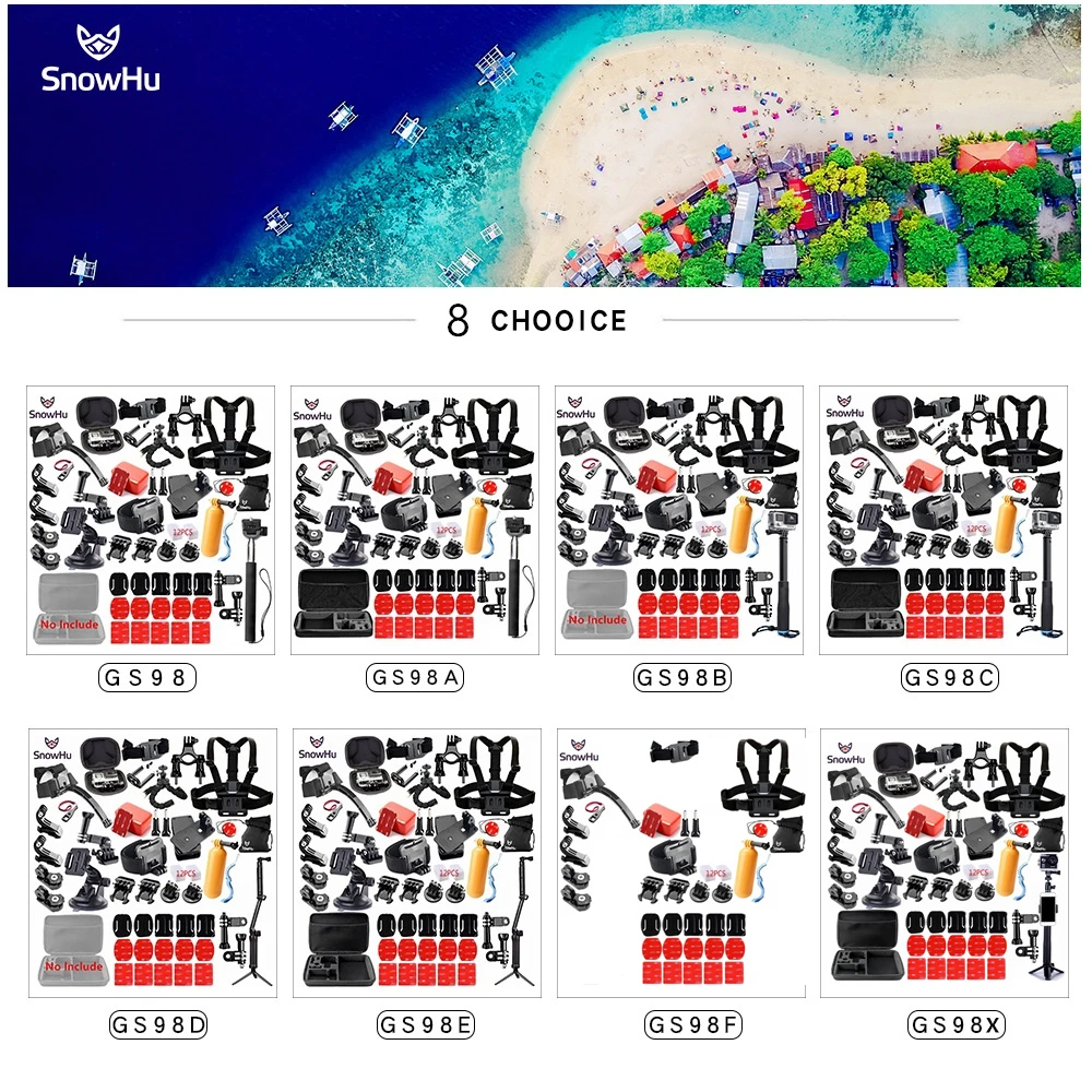 Special Offer Akcesoria snowhu do gopro zestaw dla go pro hero 8 7 6 5 4 zestaw 3 sposób selfie kij dla Eken h8r dla xiaomi dla yi pokrowiec eva GS98 Discount 51% Today!