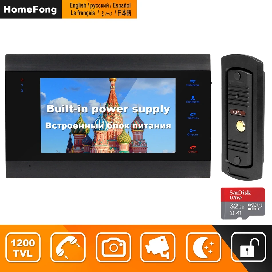 Special Offer HomeFong telefon drzwi wideo telefon drzwi domofon 7 cal Monitor wbudowany zasilacz Night Vision przewodowy wideodomofon dla bezpieczeństwo w domu Discount 55% Today!