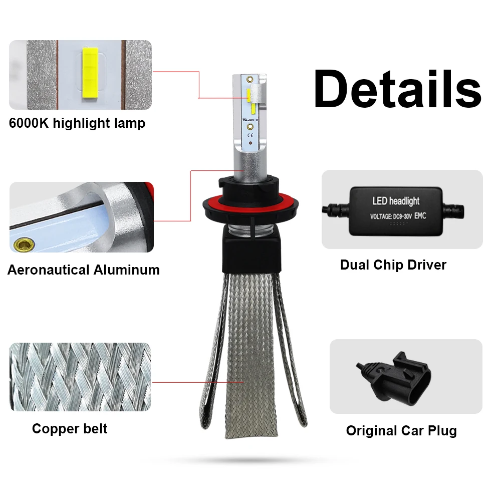 Special Offer Roadsun światła samochodowe led H4 H7 H11 H1 H3 880 9005 9006 9007 H27 HB3 HB4 ledowa żarówka do reflektorów lampa samochodowa CSP Chip Automotivo 12V 6000K Discount 57% Today!