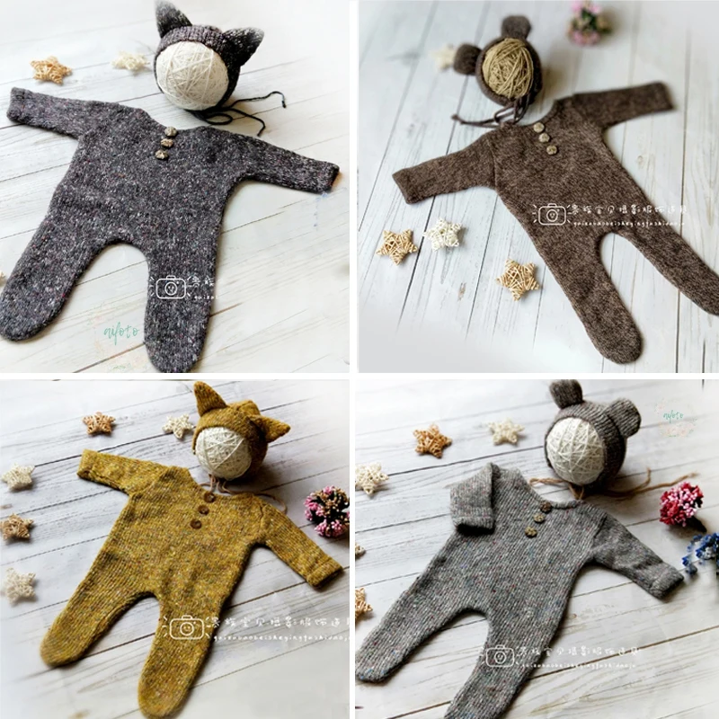 Special Offer Noworodka Fotografia rekwizyty dzianiny szydełka Romper + kapelusz 2 szt. Zestaw Fotografia akcesoria niemowlę maluch Studio strzelać zdjęcie strój chłopca Discount 58% Today!