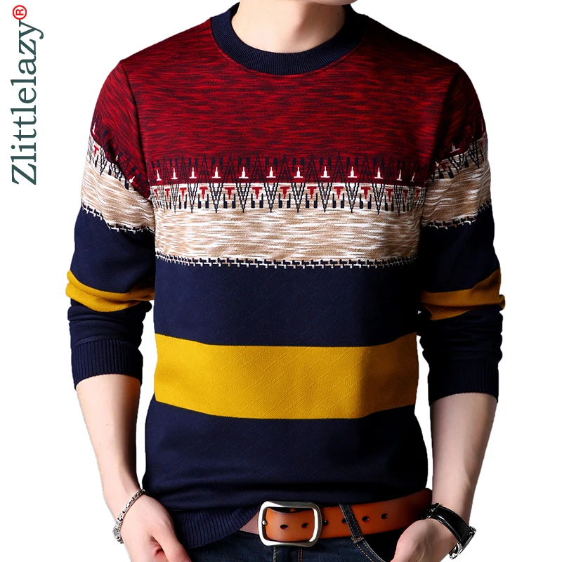 Special Offer 2019 marka casual jesień zima ciepły sweter z dzianiny w paski męski sweter mężczyźni męskie grube męskie swetry jersey odzież 41200 Discount 62% Today!