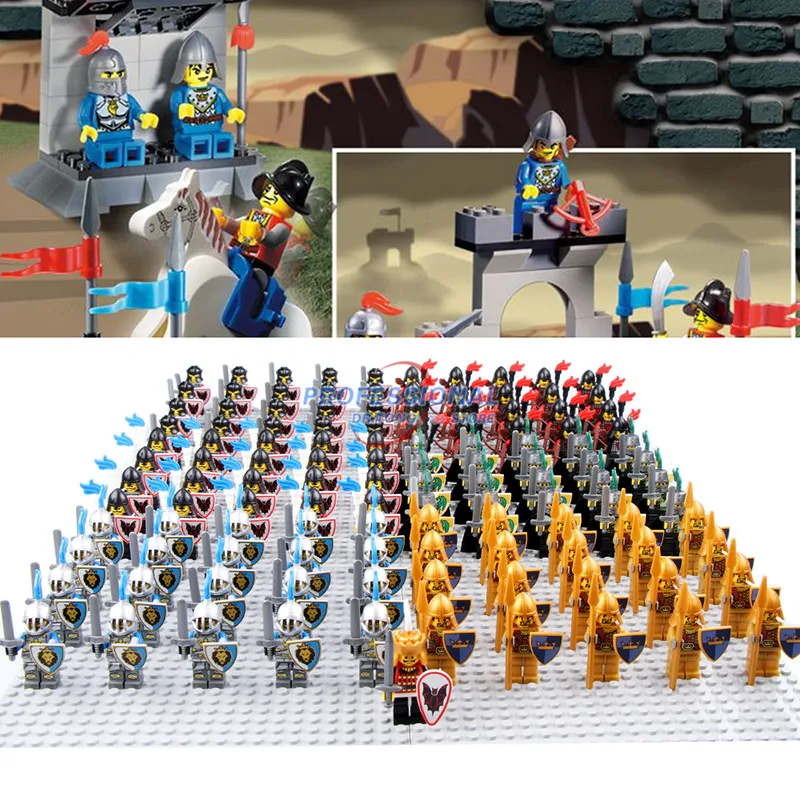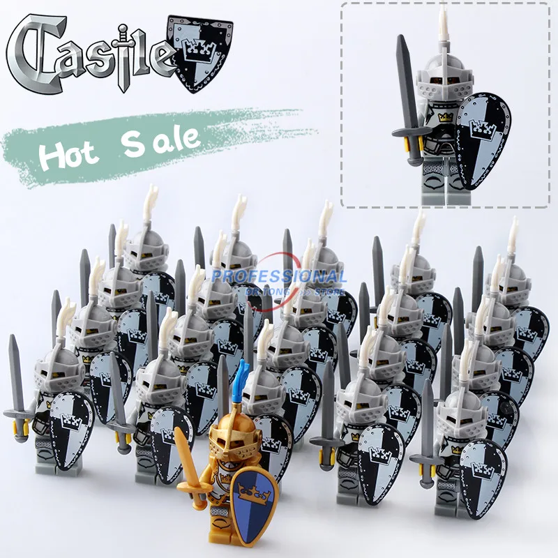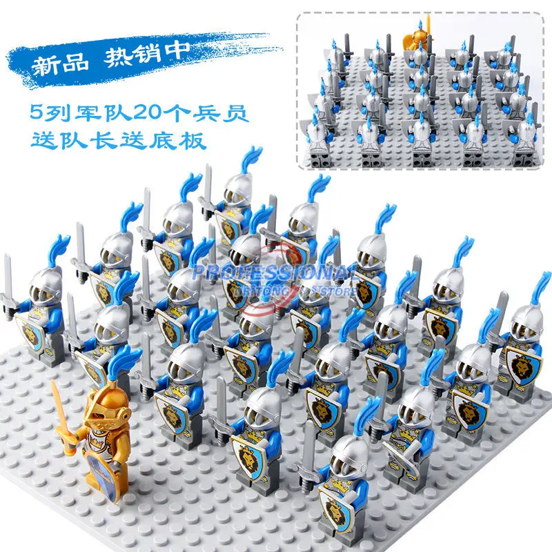 Special Offer 21 sztuk partia średniowieczny zamek rycerze Mini klocki klocki figurki zbroi z bronią Blue Lion Gold Knights Discount 9% Today!